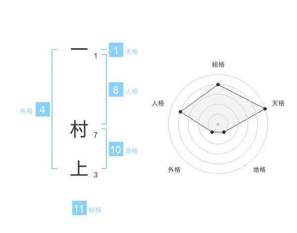 一 村上さんの総格は11画の4点!