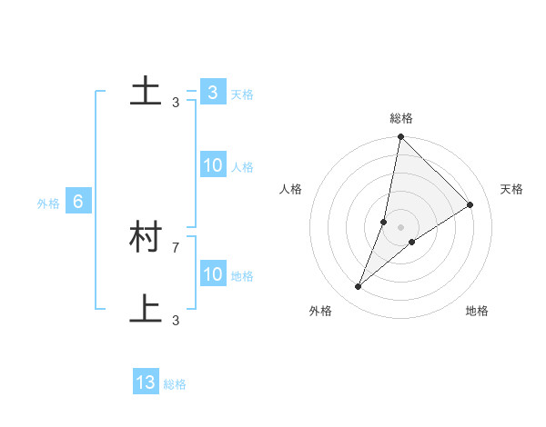 土 村上さんの総格は13画の5点!