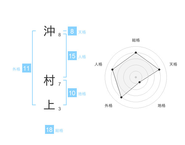 沖 村上さんの総格は18画の4点!