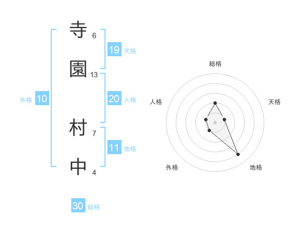 寺園 村中さんの総格は30画の2点!