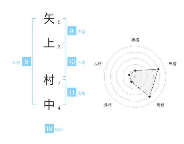 矢上 村中さんの総格は19画の1点!