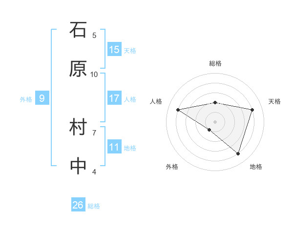 石原 村中さんの総格は26画の2点!