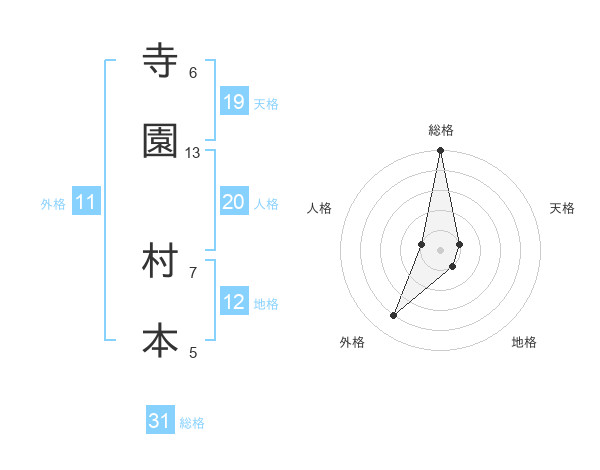 寺園 村本さんの総格は31画の5点!
