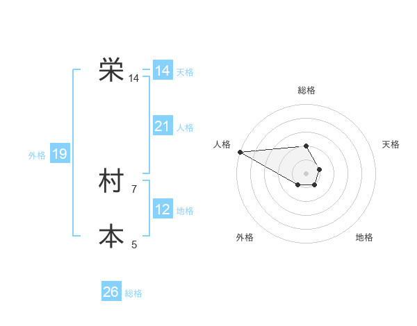 栄 村本さんの総格は26画の2点!