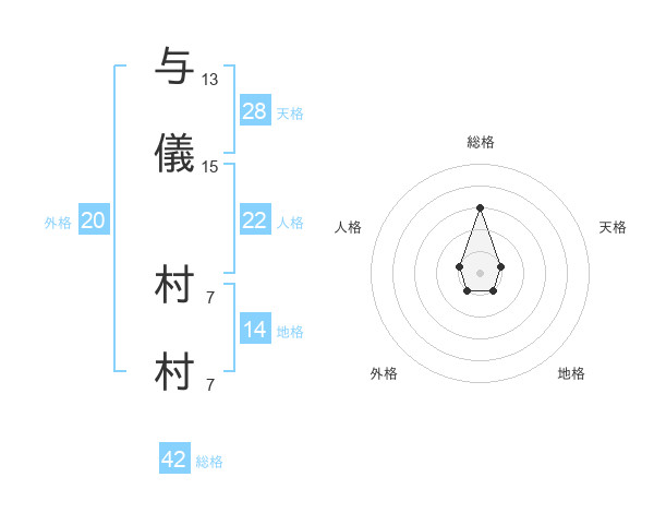 与儀 村村さんの総格は42画の3点!