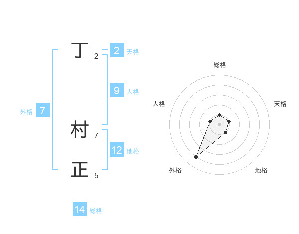 丁 村正さんの総格は14画の1点!