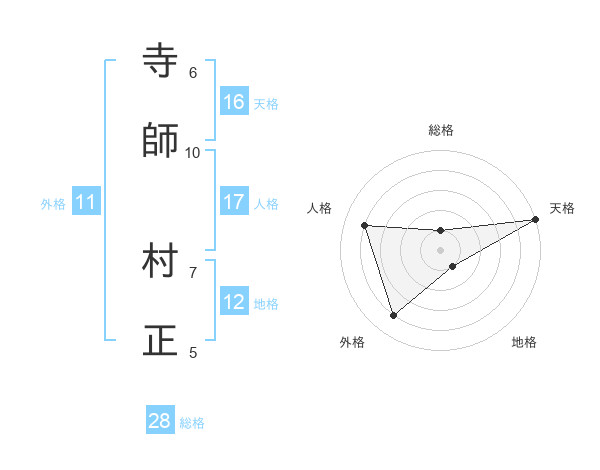 寺師 村正さんの天格は16画の5点!
