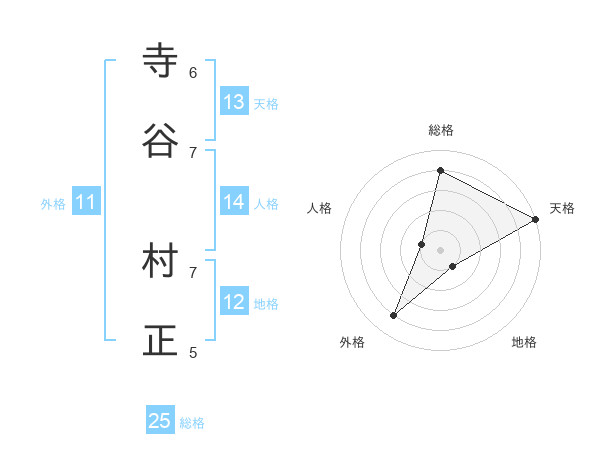 寺谷 村正さんの総格は25画の4点!