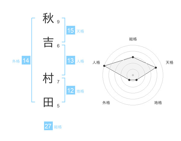 秋吉 村田さんを姓名の画数から五運を鑑定