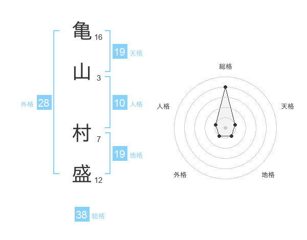 亀山 村盛さんを姓名の画数から五運を鑑定
