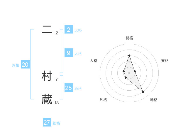二 村蔵さんの総格は27画の3点!