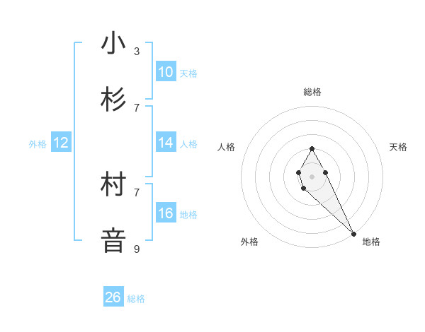 小杉 村音さんの総格は26画の2点!
