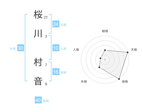 桜川 村音さんの天格は24画の5点!