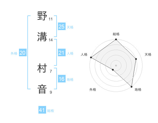 野溝 村音さんの天格は25画の4点!