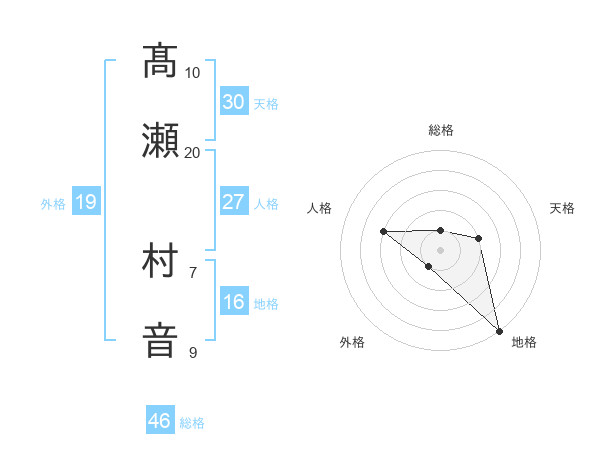 髙瀬 村音さんの地格は16画の5点!
