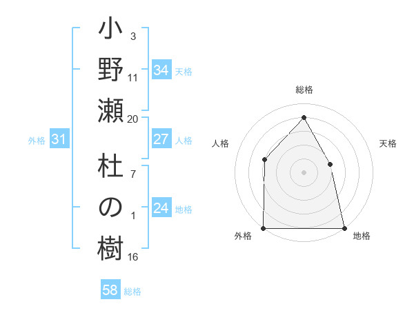 小野瀬 杜の樹さんを姓名の画数から五運を鑑定