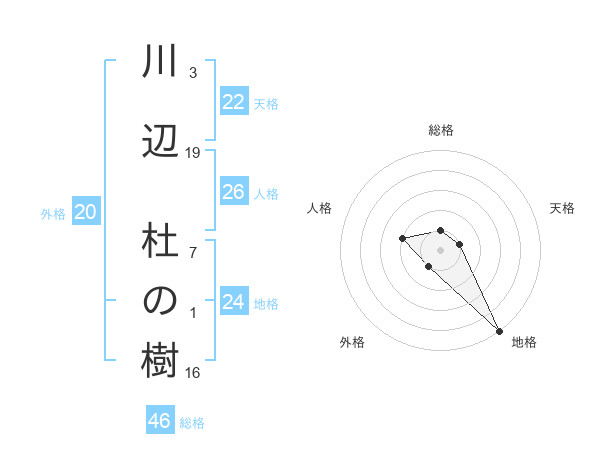 川辺 杜の樹さんを姓名の画数から五運を鑑定