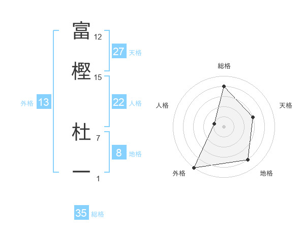 富樫 杜一さんの総格は35画の4点!