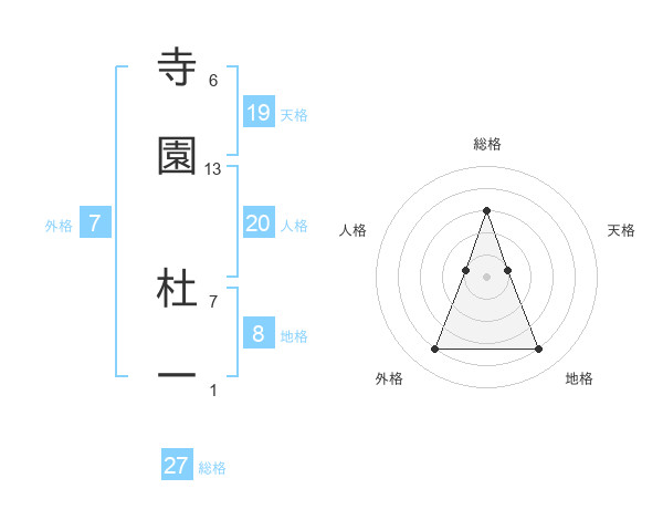 寺園 杜一さんの総格は27画の3点!