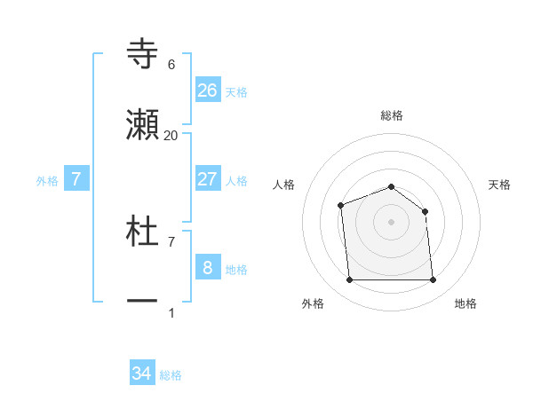 寺瀬 杜一さんの天格は26画の2点!