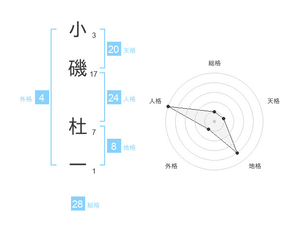 小磯 杜一さんの総格は28画の1点!