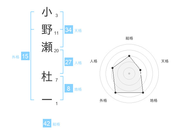小野瀬 杜一さんを姓名の画数から五運を鑑定
