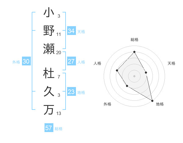 小野瀬 杜久万さんを姓名の画数から五運を鑑定