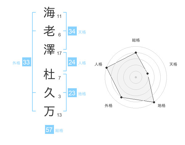 海老澤 杜久万さんを姓名の画数から五運を鑑定