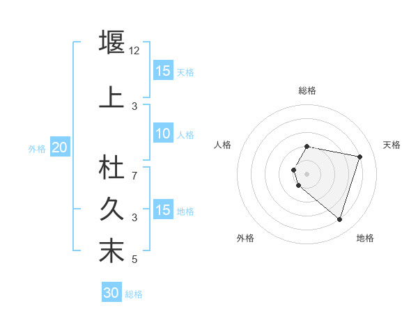 堰上 杜久末さんを姓名の画数から五運を鑑定