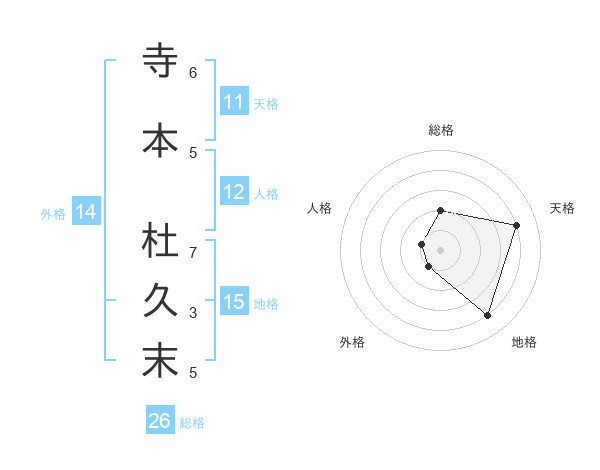 寺本 杜久末さんの総格は26画の2点!
