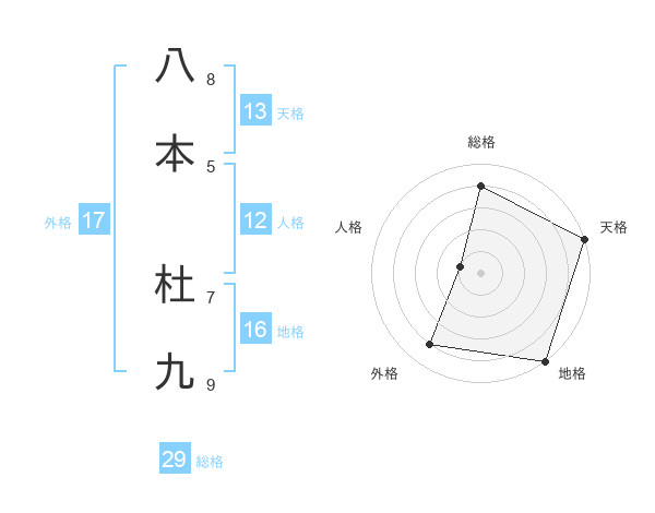 八本 杜九さんの総格は29画の4点!