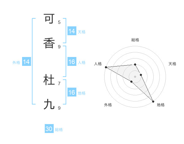 可香 杜九さんの総格は30画の2点!