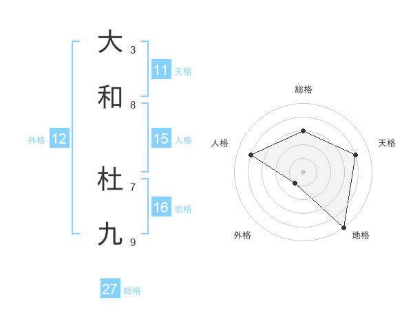 大和 杜九さんの総格は27画の3点!