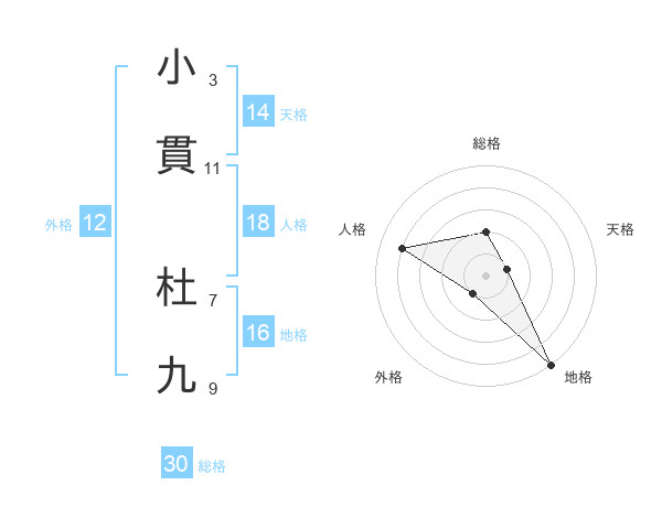 小貫 杜九さんを姓名の画数から五運を鑑定