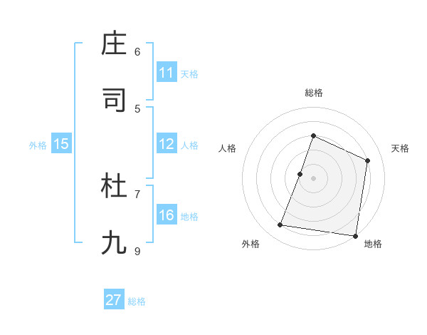 庄司 杜九さんを姓名の画数から五運を鑑定