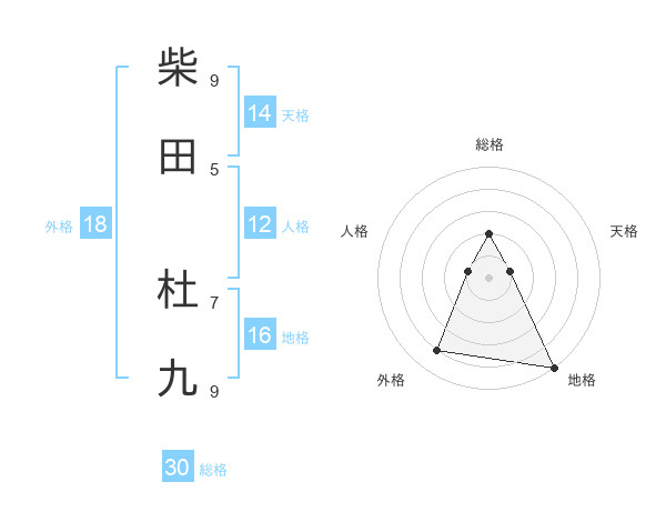 柴田 杜九さんを姓名の画数から五運を鑑定