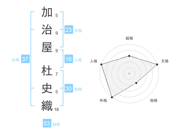 加治屋 杜史織さんを姓名の画数から五運を鑑定