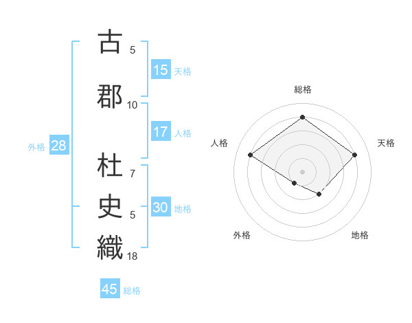 古郡 杜史織さんを姓名の画数から五運を鑑定