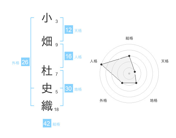 小畑 杜史織さんを姓名の画数から五運を鑑定