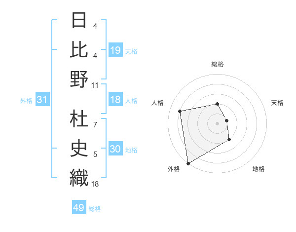 日比野 杜史織さんを姓名の画数から五運を鑑定