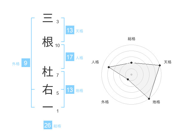 三根 杜右一さんを姓名の画数から五運を鑑定