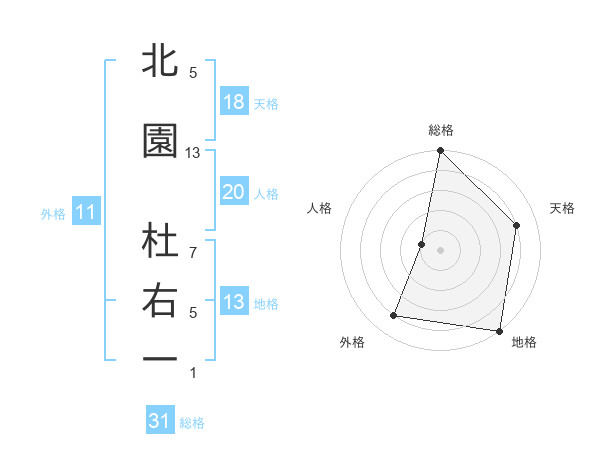 北園 杜右一さんを姓名の画数から五運を鑑定