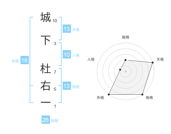 城下 杜右一さんを姓名の画数から五運を鑑定