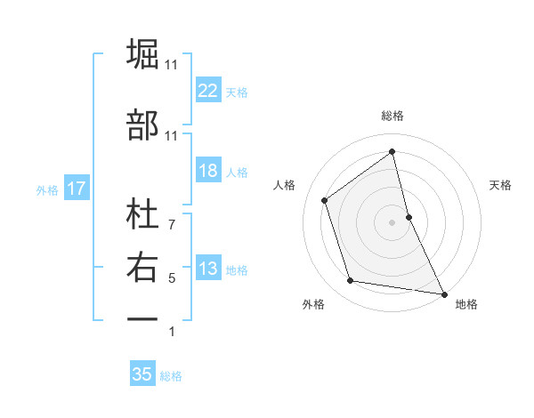 堀部 杜右一さんを姓名の画数から五運を鑑定