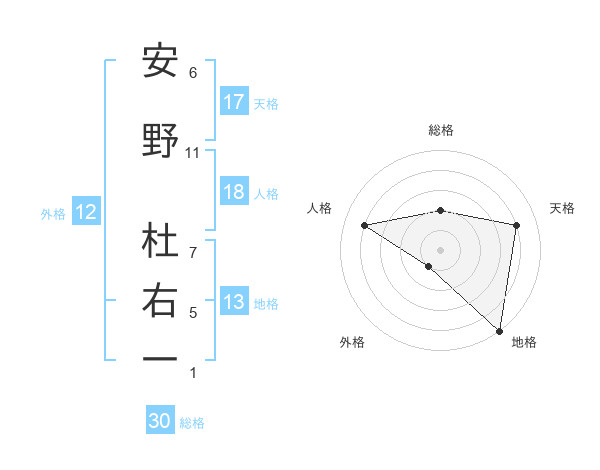 安野 杜右一さんを姓名の画数から五運を鑑定