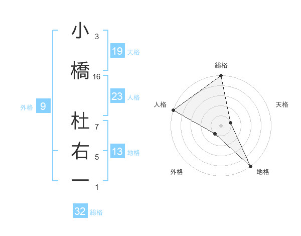 小橋 杜右一さんを姓名の画数から五運を鑑定