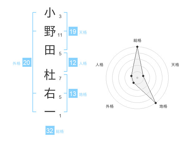 小野田 杜右一さんを姓名の画数から五運を鑑定