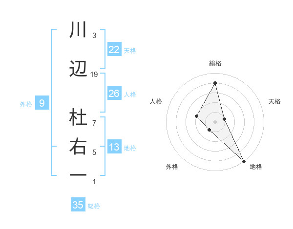 川辺 杜右一さんを姓名の画数から五運を鑑定