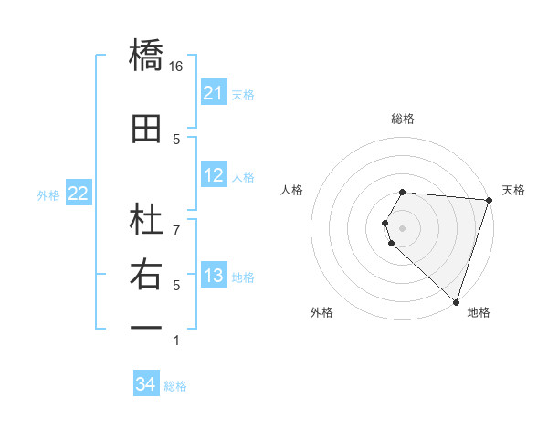 橋田 杜右一さんを姓名の画数から五運を鑑定
