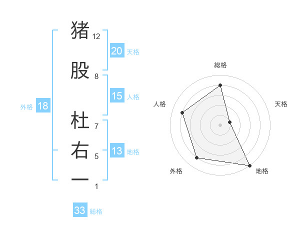 猪股 杜右一さんの総格は33画の4点!